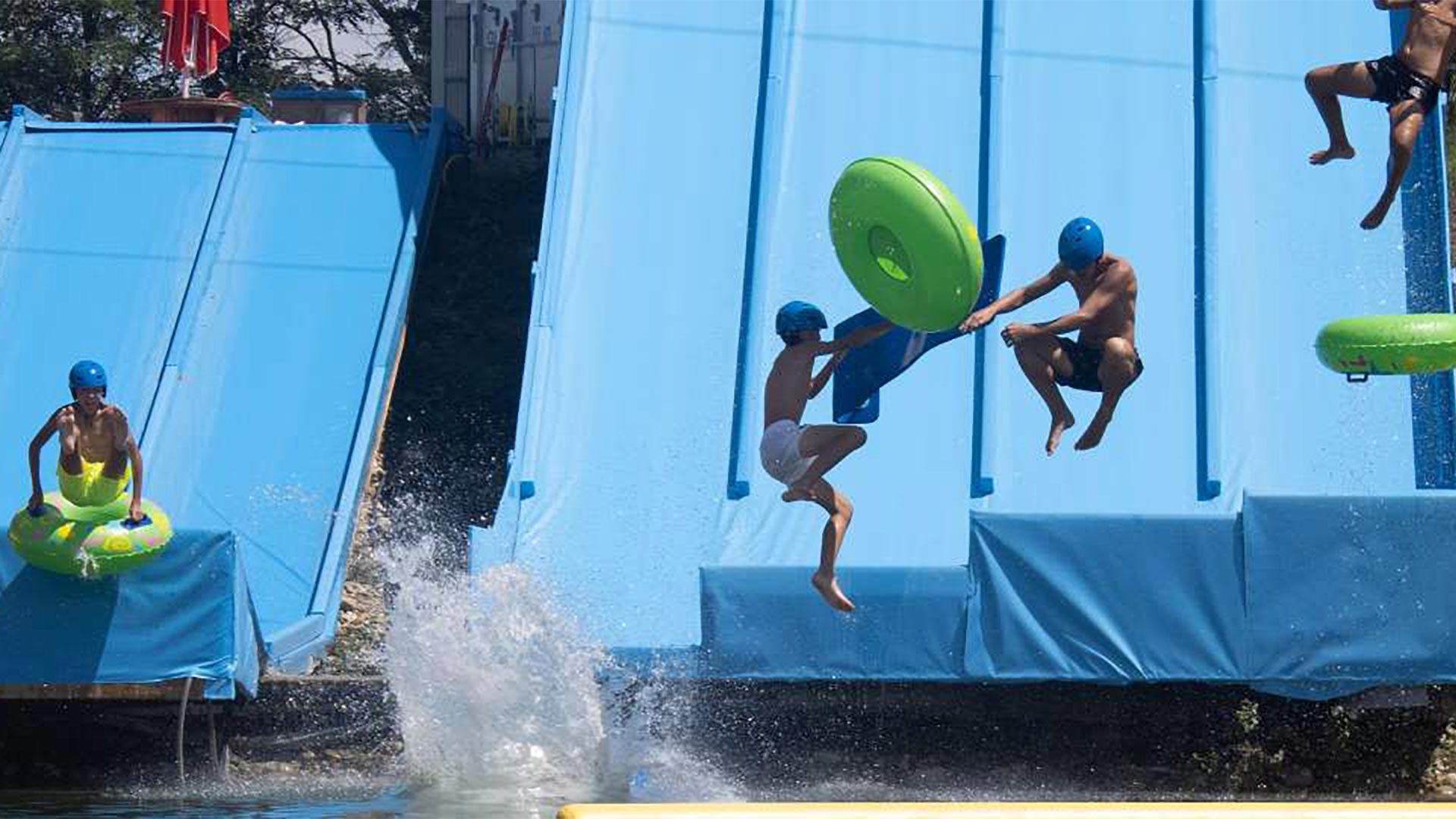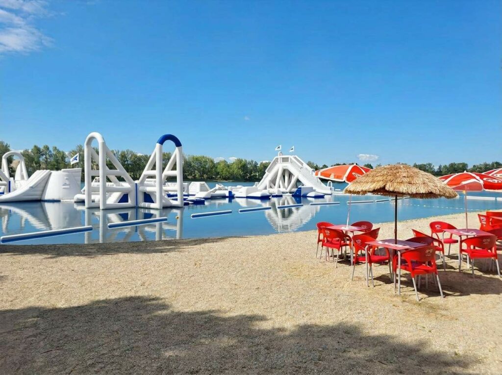 Un parc de jeux aquatiques d’une surface de plus de 5000 m², avec de nombreux dispositifs de loisir : plage, parcours gonflable, toboggans et obstacles. Vous trouverez aussi un Waterjump ( piste de tramplin avec atterrissage dans l’eau) et des pédalos pour un maximum de plaisir et de détente sur l’eau… et une occasion unique de créer des aventures sans fin, en famille ou entre amis.